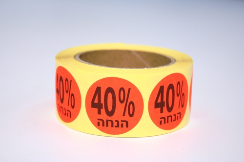 מדבקות שונות עם כיתובים בהנחה/מבצע/אחוזים שונים