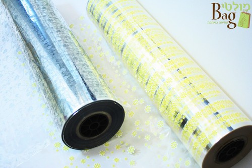 גליל צלופן מודפס דוגמאות שונות או כסף מטאלי (אטום)